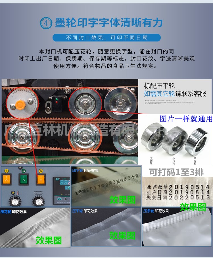 本機是新一代集印碼,封口,連續輸送為一體的自動薄膜封口機,具有印字清晰、顔色可選、即印即干、換字方便等特點。